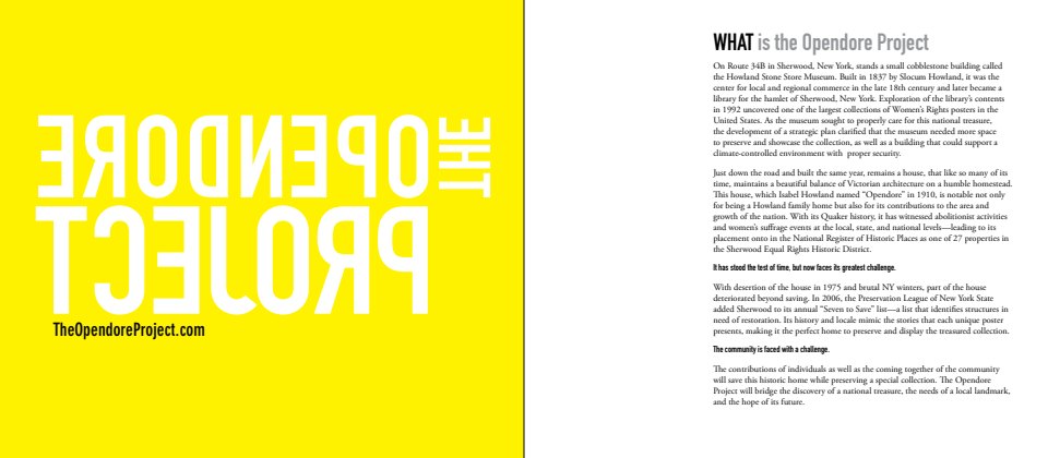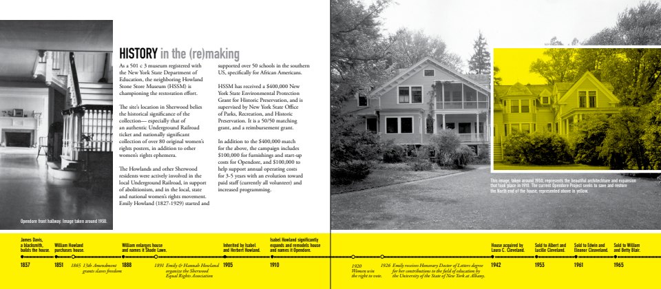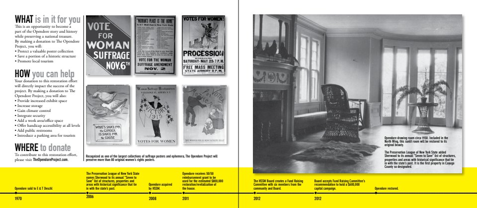 Exploration of a historic home in Sherwood, New York uncovered one of the largest collections of Women’s Rights posters in the United States. As the community sought to properly care for this national treasure, the development of a strategic plan clarified that the building needed more space to preserve and showcase the collection. This project was designed in order to increase awareness and donations, leading to the preservation of this national treasure. This piece led to significant donations, including a national grant — and the ribbon cutting for the newly restored home is scheduled for late 2019.