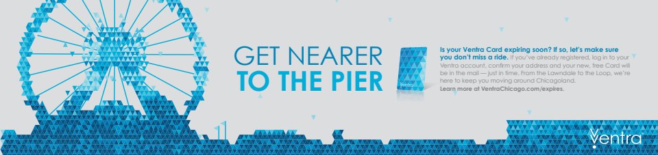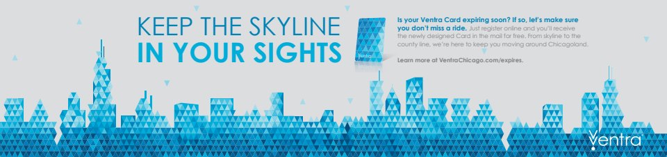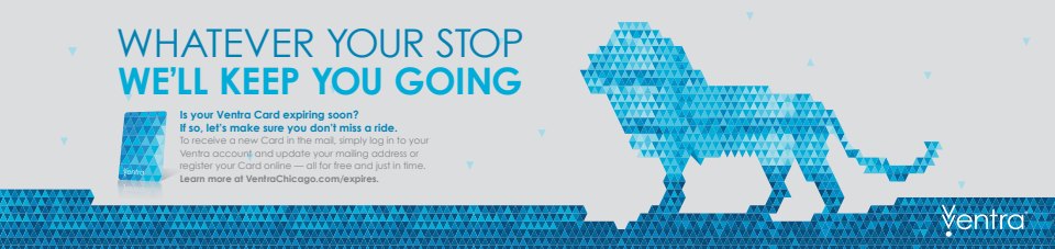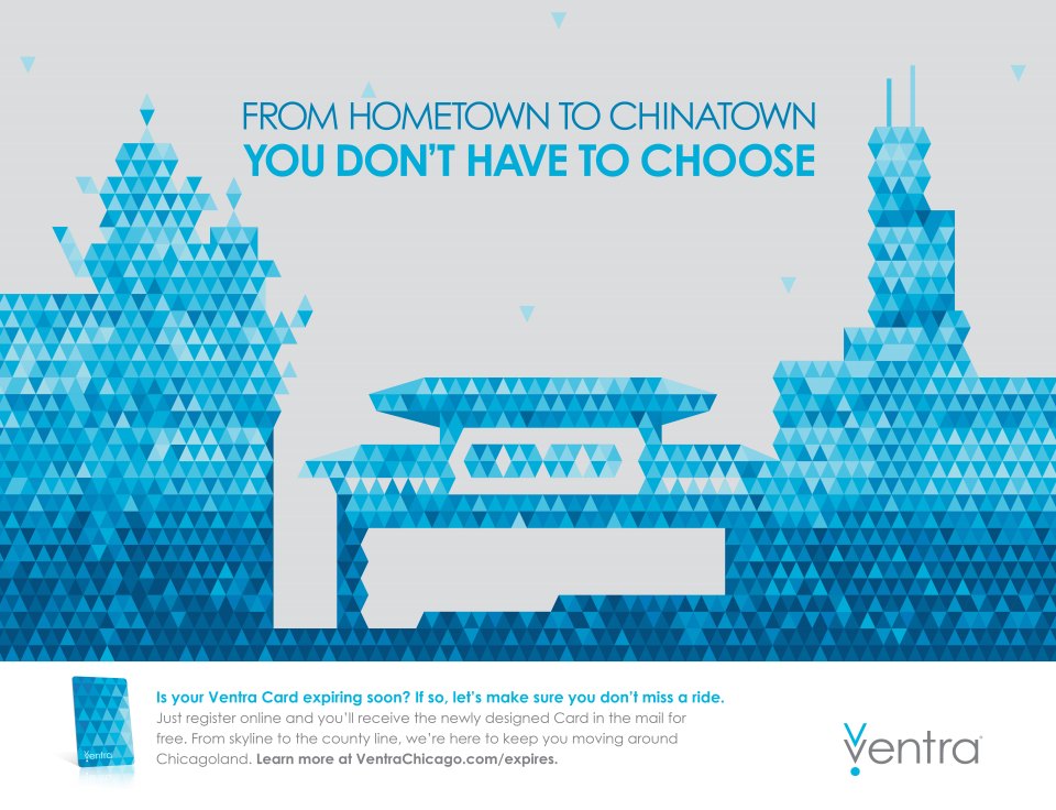 As the first Ventra Cards — Chicago’s electronic fare payment system — began to expire in December 2017, Grisko was tasked with launching an education and awareness campaign to inform riders of upcoming changes. As a vital part of Chicagoans’ daily commute, it was imperative riders knew exactly what steps to take to swap out their card and never miss a ride. We also took the opportunity to update the card’s design.